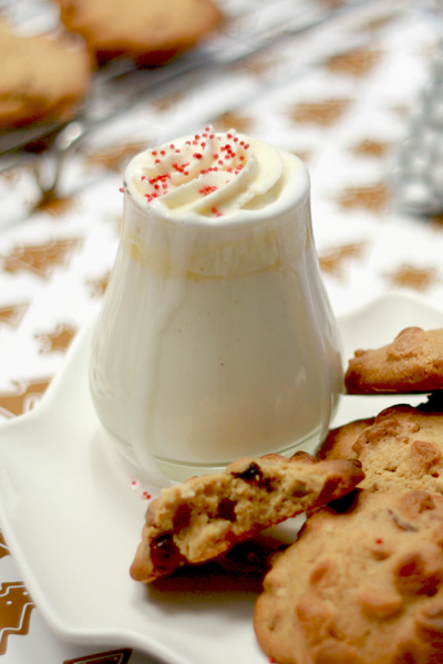 Bij een winters drankje, past een winterse snack en om helemaal in de kerstsferen te komen, maak ik er cranberrykoekjes bij. Wat ik over houd, neem ik mee naar mijn werk voor de kerstlunch met mijn collega’s. Zij blij, ik blij.