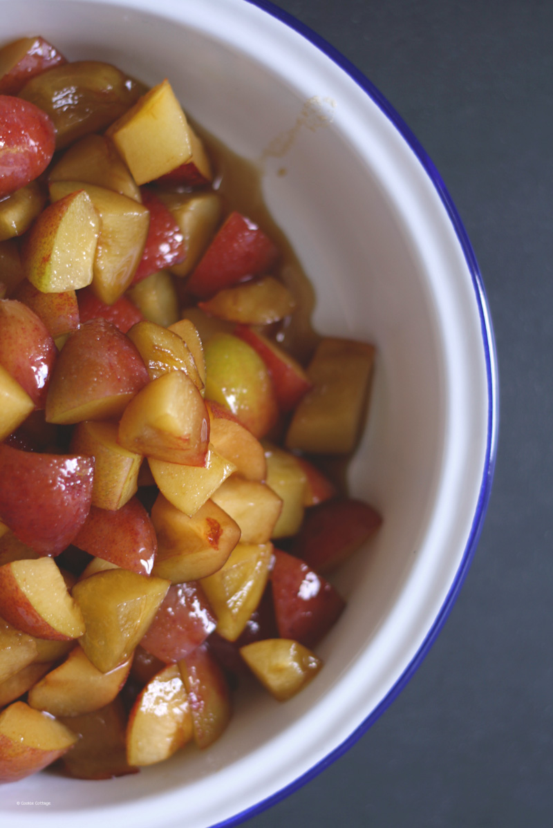 Het is een fijn gerecht dat zich snel laat bereiden en zich daarom perfect leent als afsluiter van een gezellig zomers etentje. Geen uren in de keuken en daarom ook geschikt als eenvoudig doordeweeks dessert of gewoon omdat de pruimen snel op moeten. Kook je een eenvoudige doordeweekse maaltijd, begin dan met de pruimencrumble voor je aan het avondeten begint. Schuif de crumble in de oven, kook je maaltijd en haal je toetje na een half uur uit de oven. Zodra je aan het toetje begint is de crumble precies genoeg afgekoeld. Easypeasy.